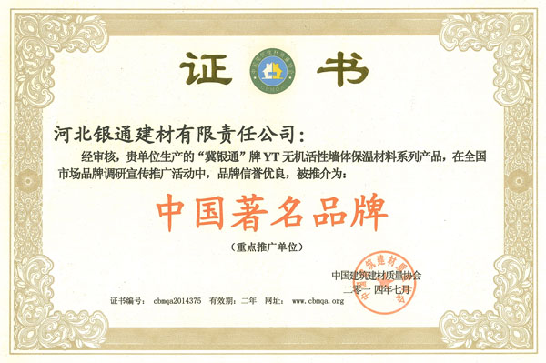 河北銀通建材有限責(zé)任公司,專注于環(huán)保節(jié)能新型保溫材料的研發(fā)和推廣,是北京質(zhì)量檢驗(yàn)認(rèn)證協(xié)會(huì)會(huì)員單位,公司產(chǎn)品YT無機(jī)活性保溫材料;無機(jī)輕集料保溫砂漿,無機(jī)保溫砂漿榮獲住建部:綠色建筑節(jié)能推薦產(chǎn)品證書;中國(guó)著名品牌;全國(guó)保障性住房建設(shè)用材優(yōu)秀供應(yīng)商: